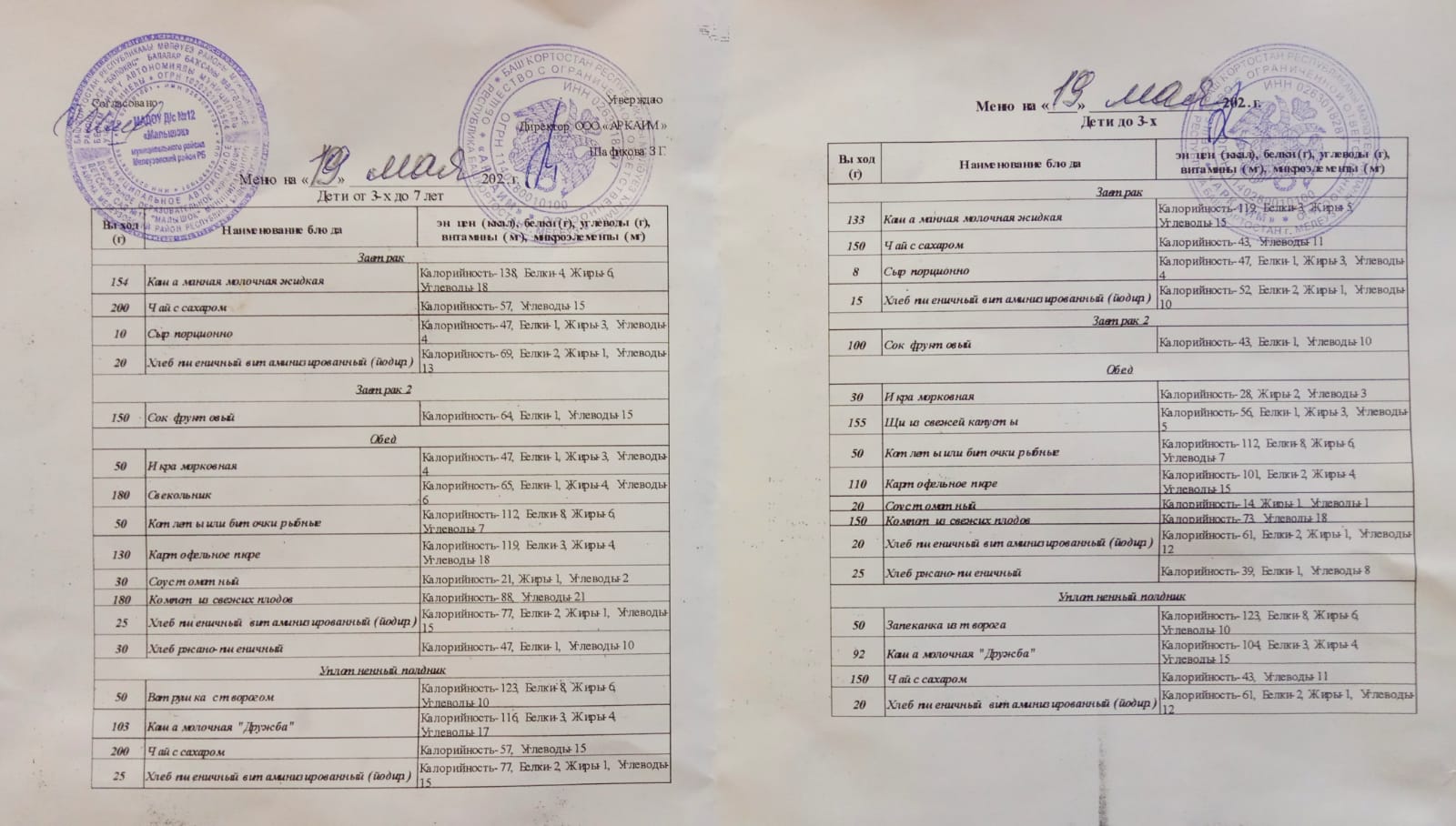 (Меню на 19.05.2022г.)