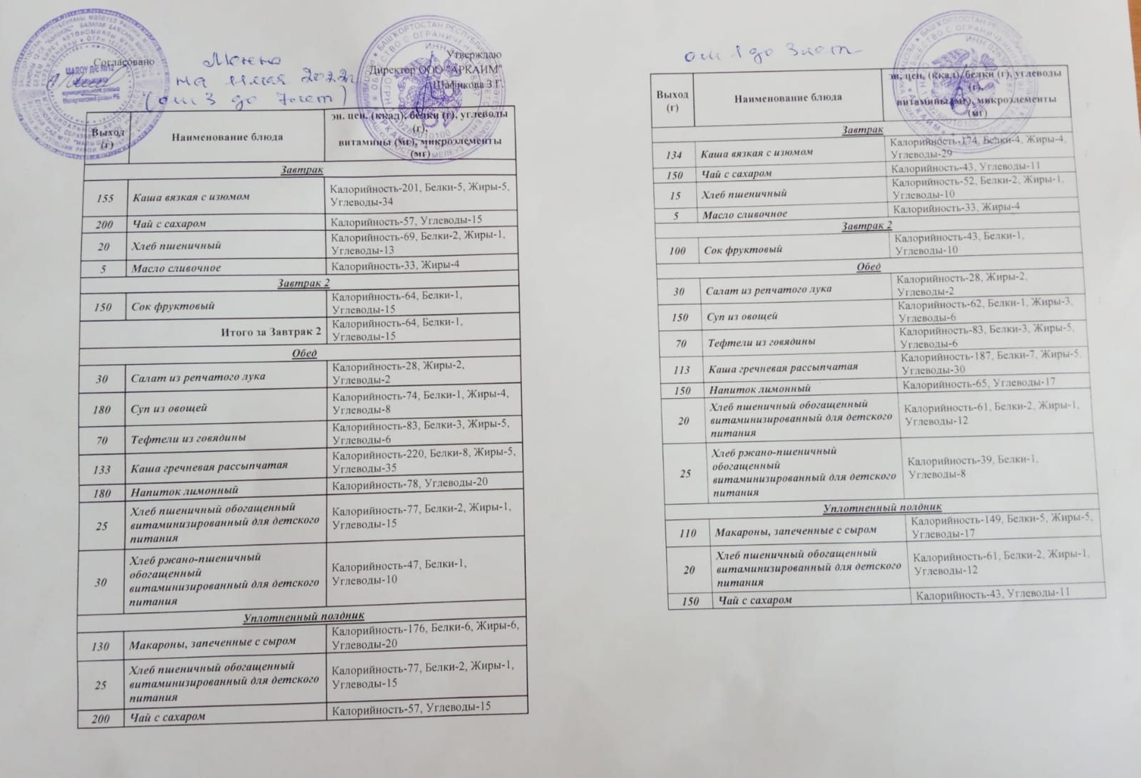 (Меню на 16.05.2022г)