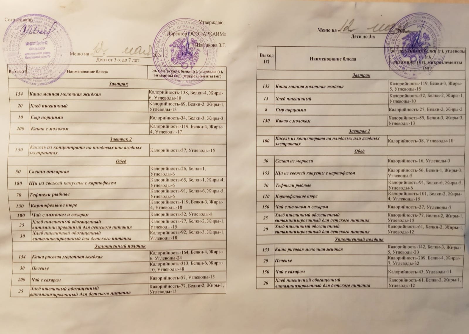 (Меню на 12.05. 2022г.)