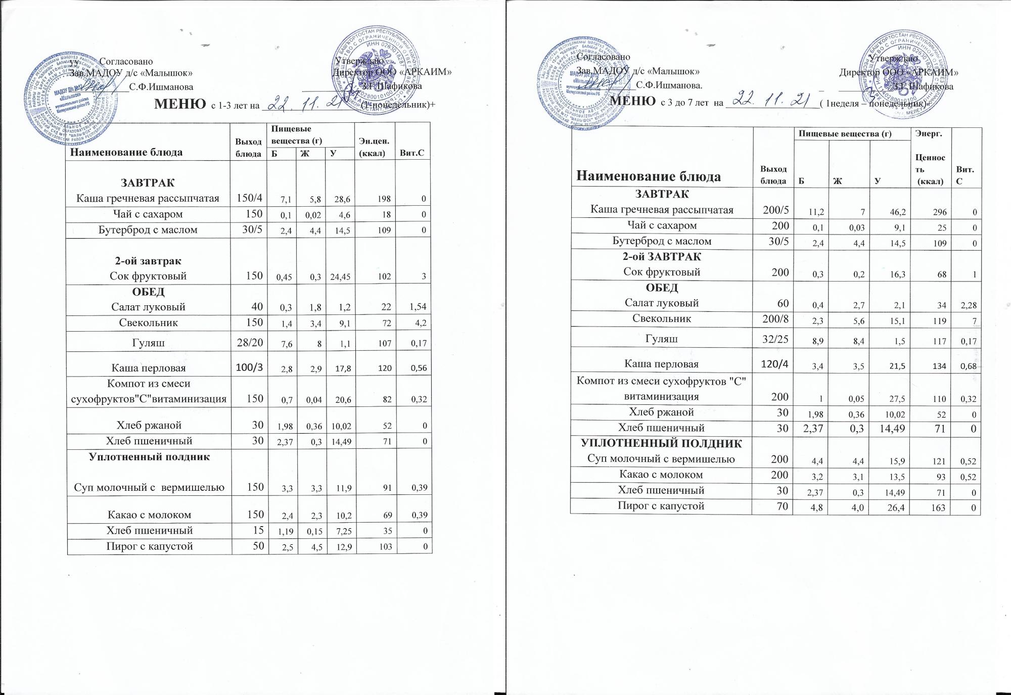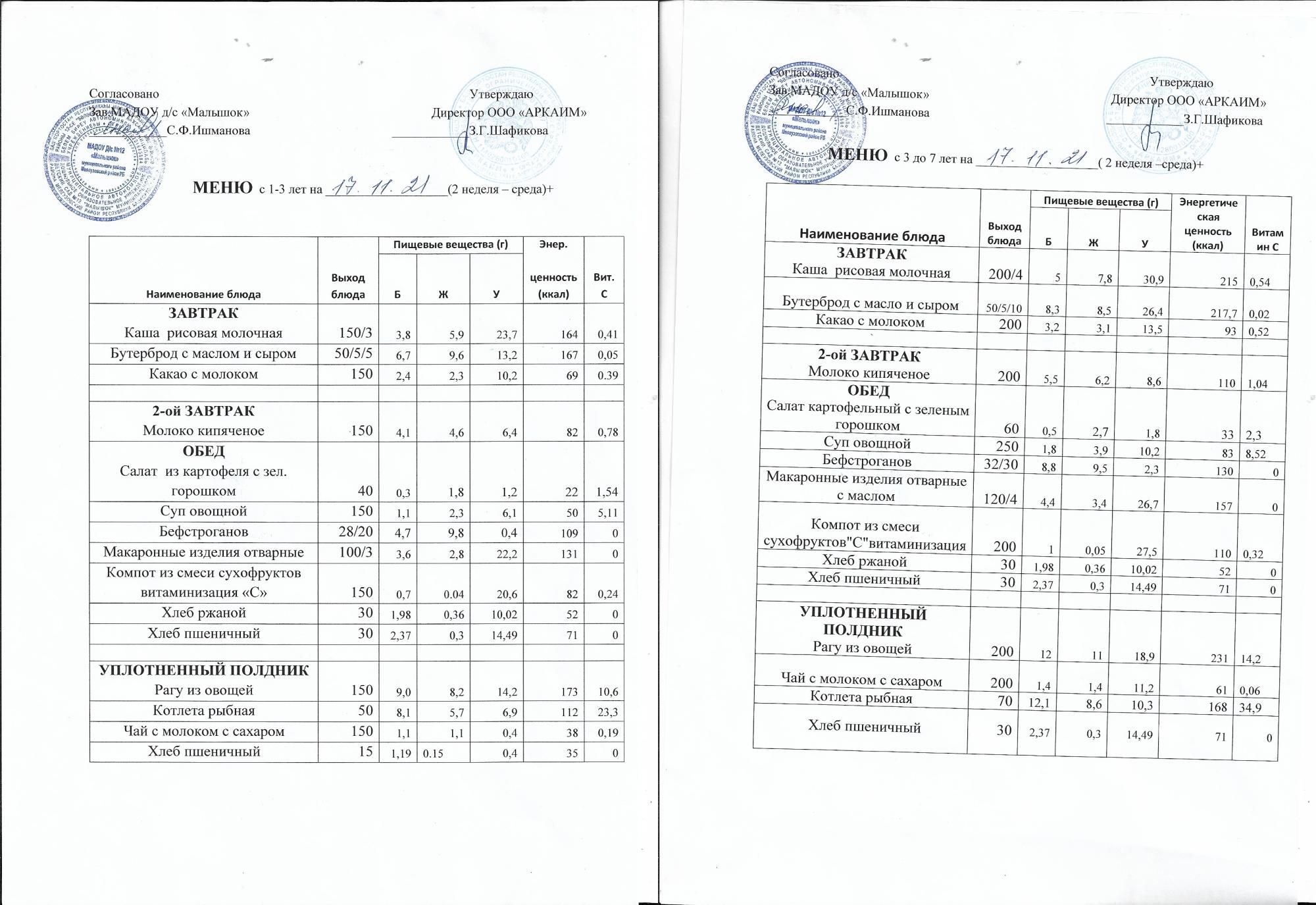(Меню на 17.11. 2021 )