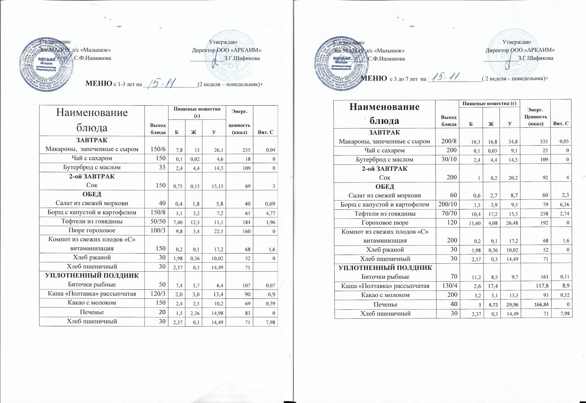 (Меню на 15.11. 2021г. )
