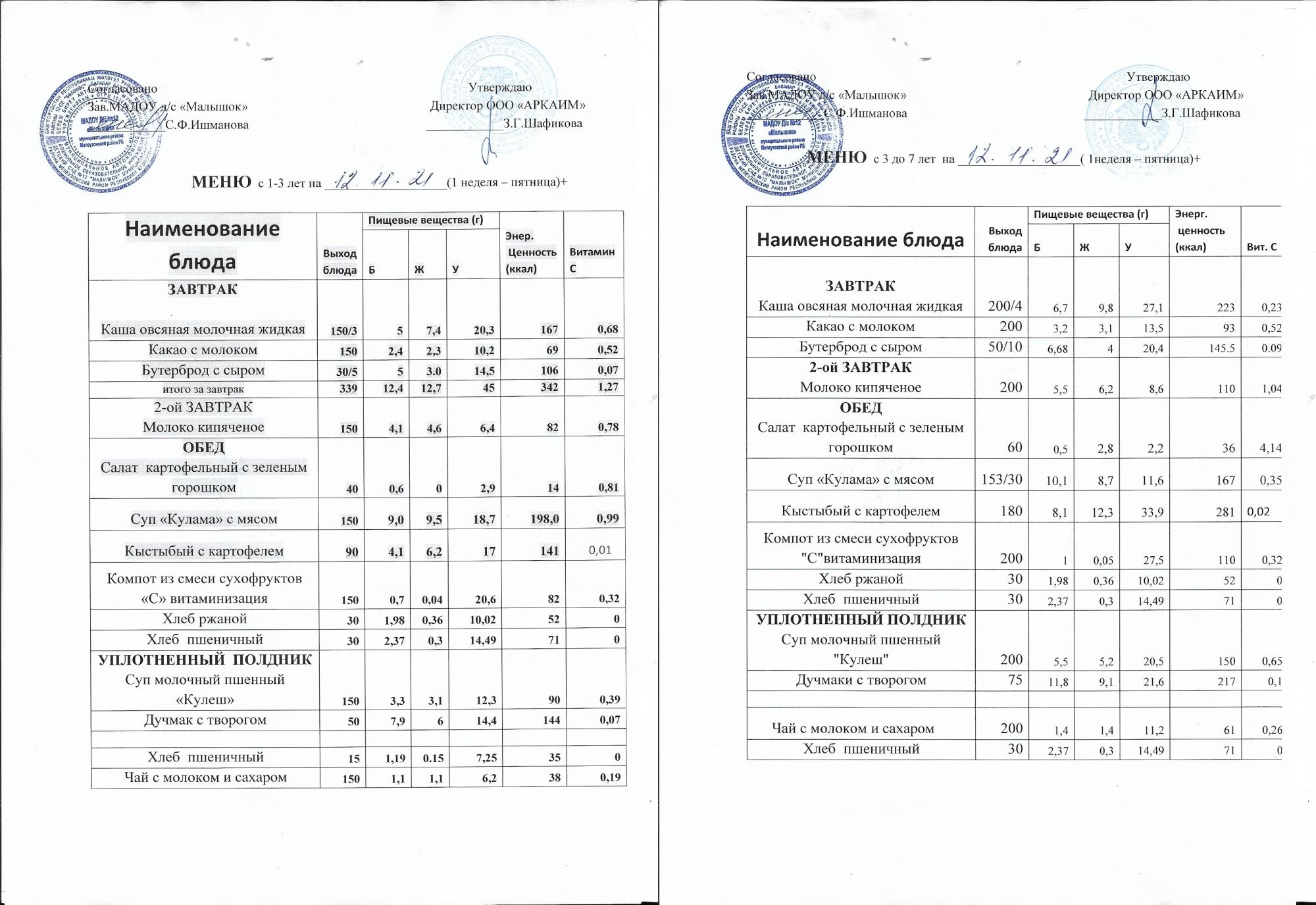 (Меню на 12.11. 2021 )