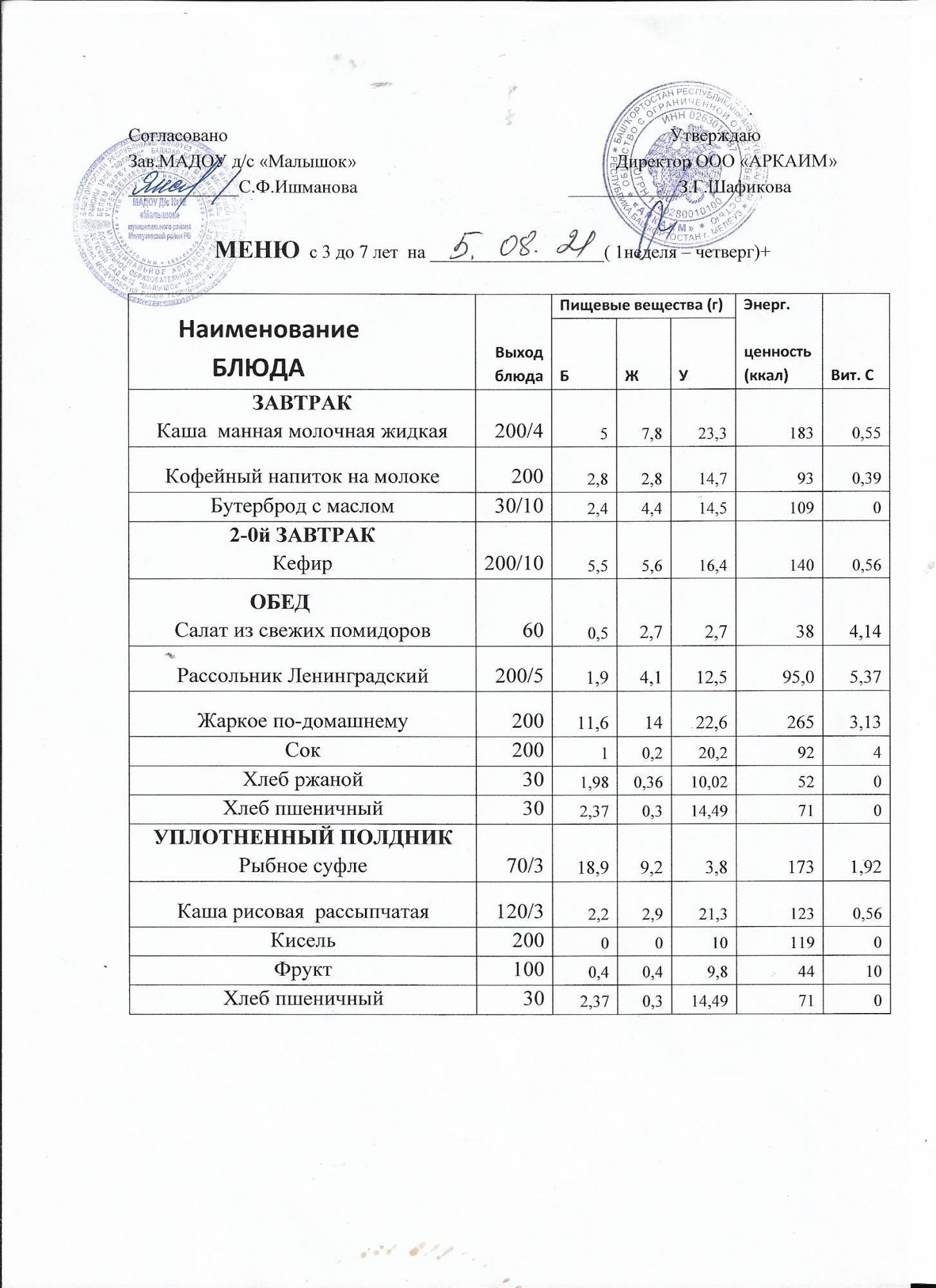 (Меню на 05.08.2021)